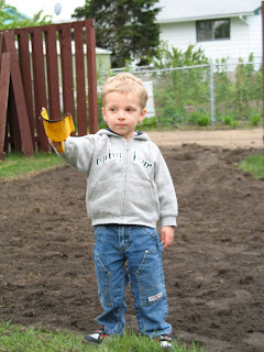 The kids made sure they got in on the action. Here, Tate transfers a scoopful of dirt to contribute to the efforts.